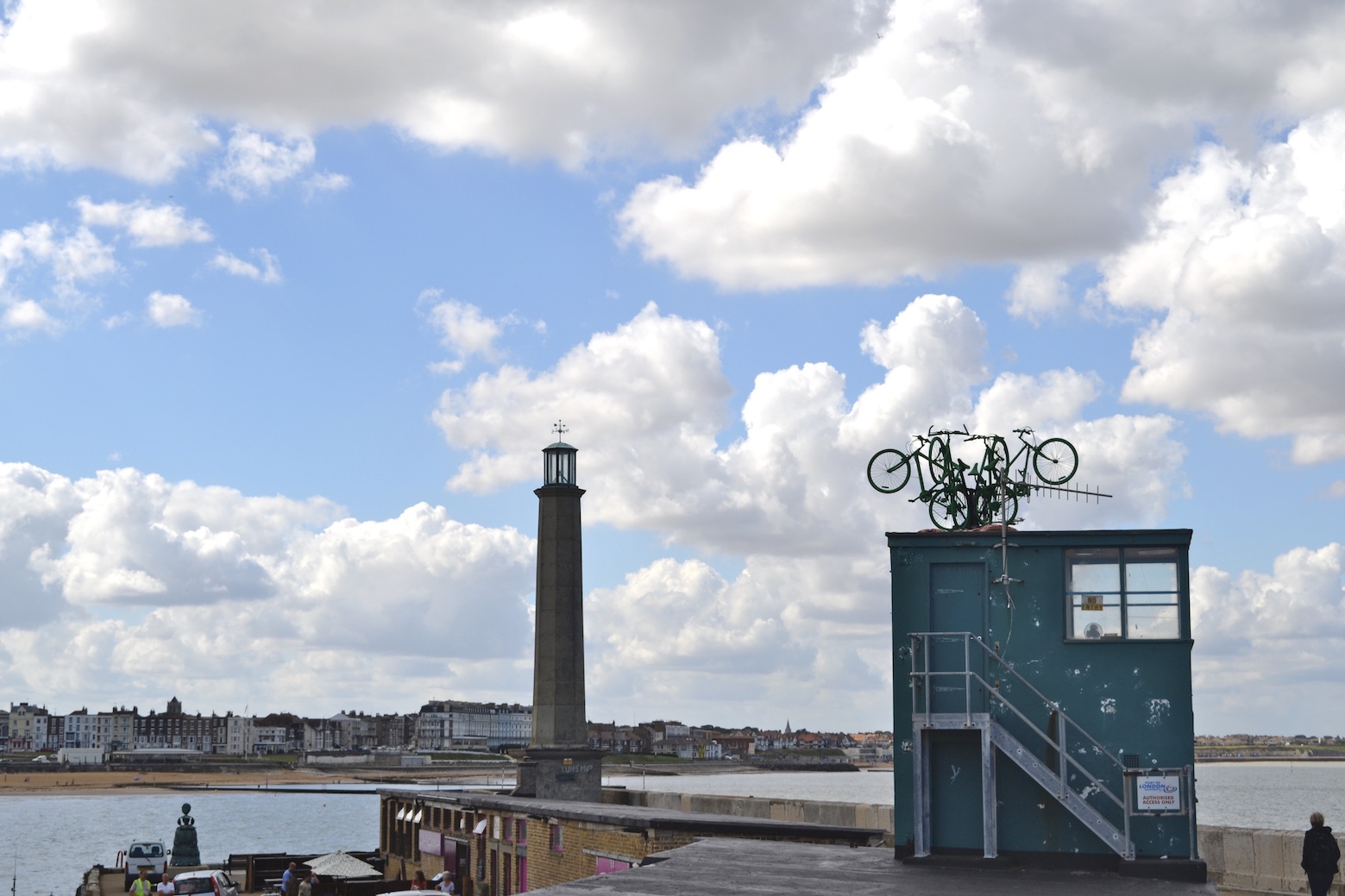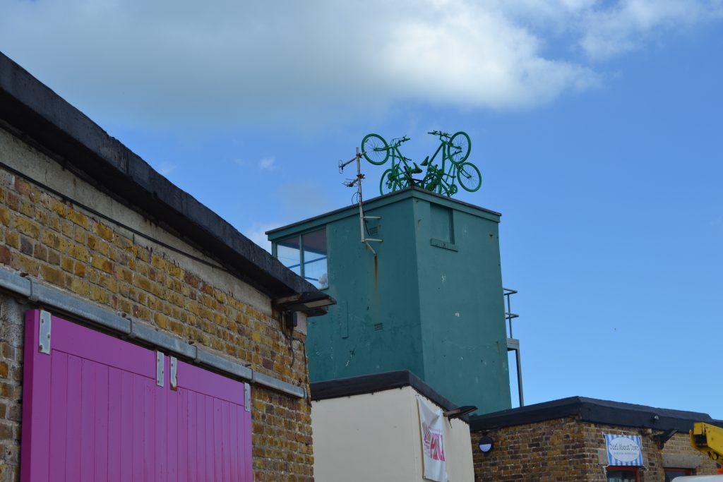 The Cycling the Seven Seas installation sat on the lookout rooftop of the Harbour Arm Gallery, Margate.