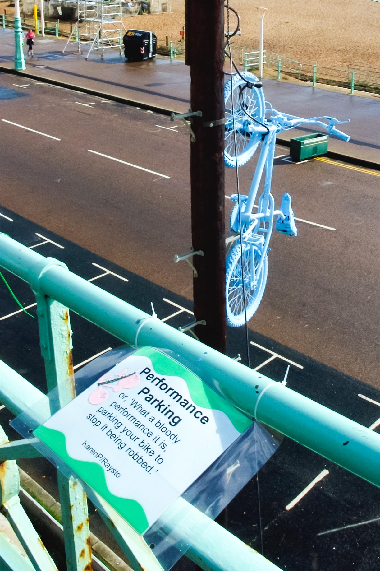 It was initially called Performance Parking – inspired by the lengths you sometimes have to go to, to securely park your bike. It started as a bit of a joke; a comment on how impossible it was to park your bike, especially overnight without it getting vandalised or stolen. The solution? Park your bike out of reach in an impossible location, at the top of a wall or post.