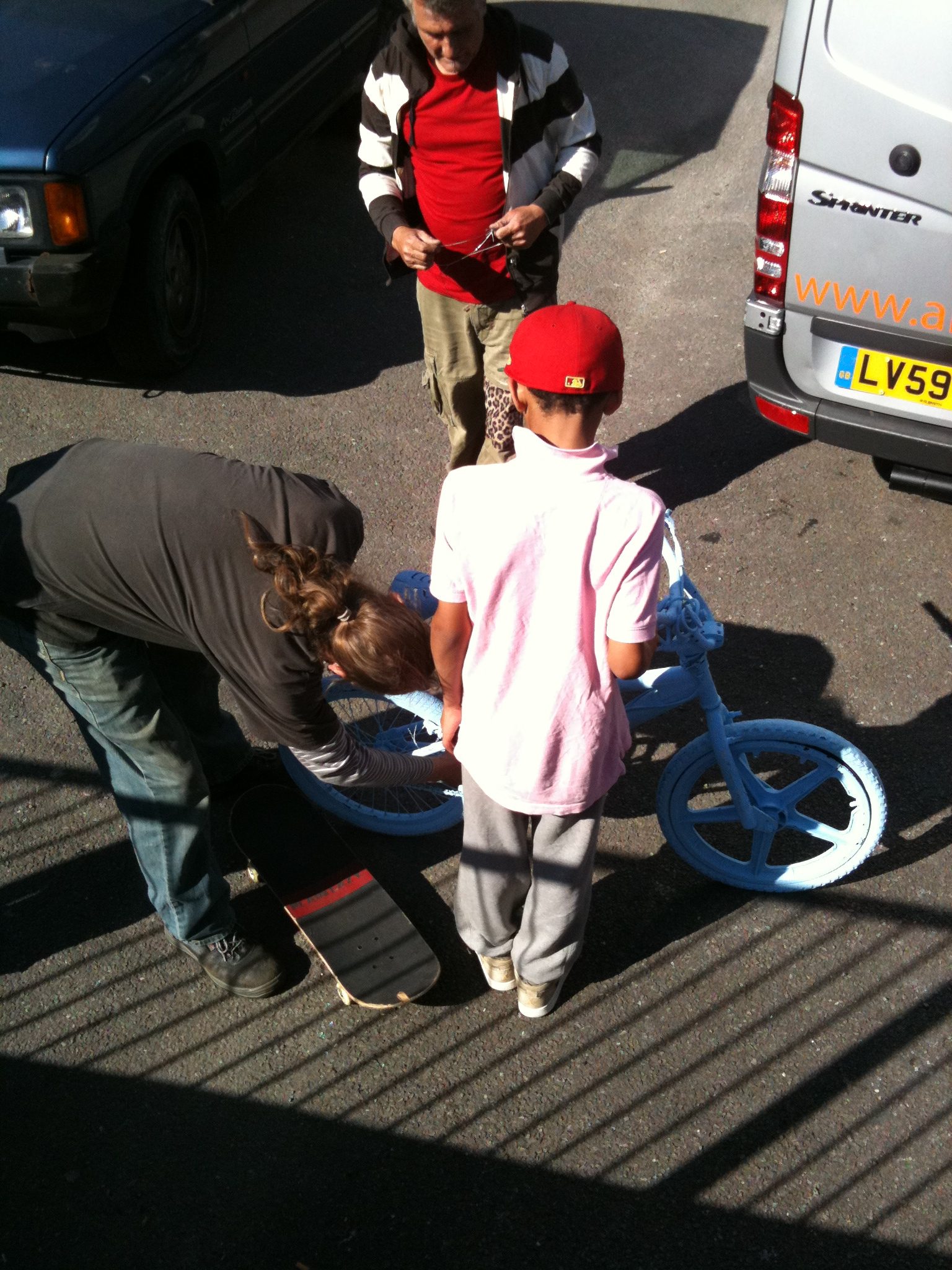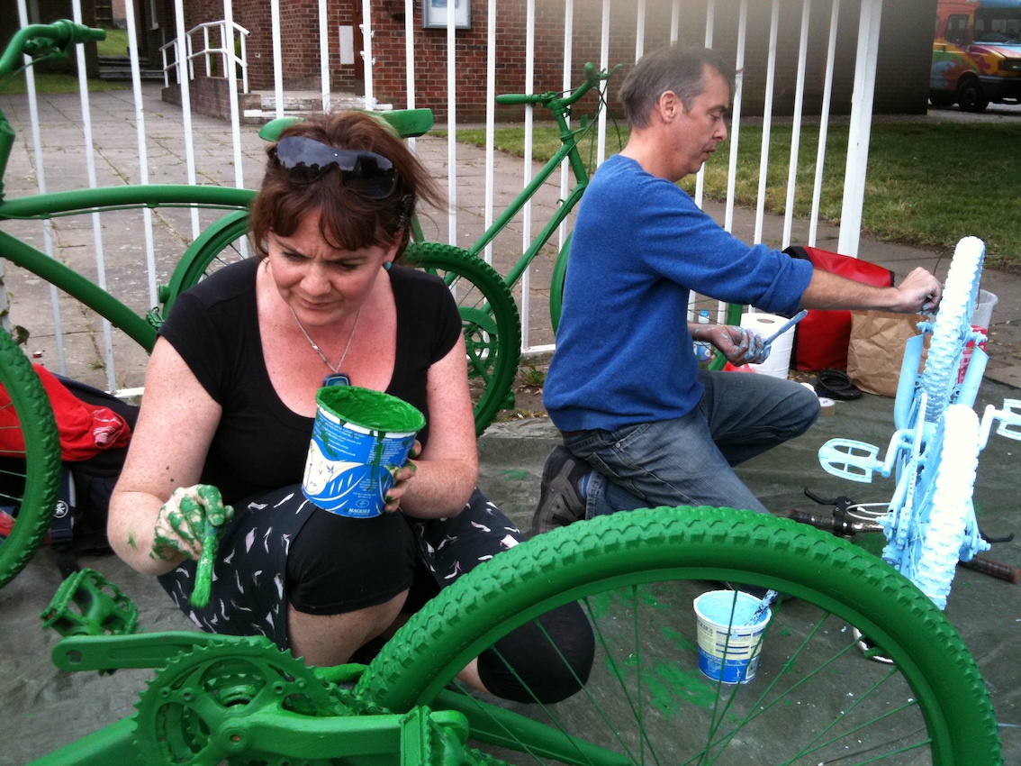 Starting with painting. With Maria Tribe & Ray Gibson outside Alton Hall Community Centre, meeting lots of locals. So many bike enthusiasts, plus trick cyclists & seriously pimped rides.