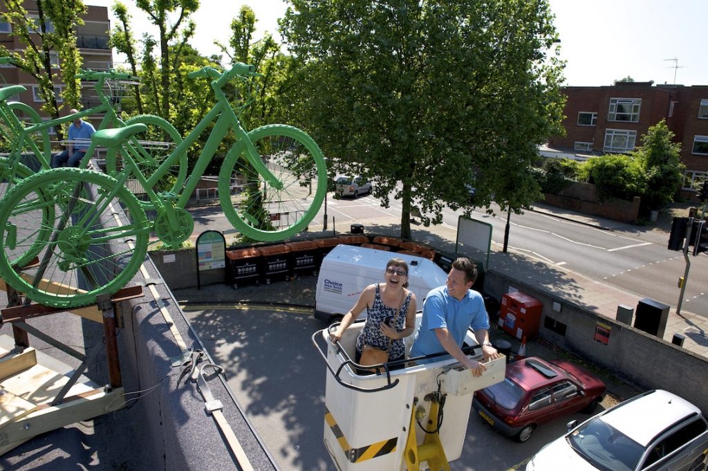 Hot on the heels of the success of Green Horses in Wandsworth Arts Festival, Wandsworth Council and Mayor of London Presents commissioned reCyculture to create an installation for the roof of Putney Leisure Centre, along the route of the London Olympic Cycling Road Race…