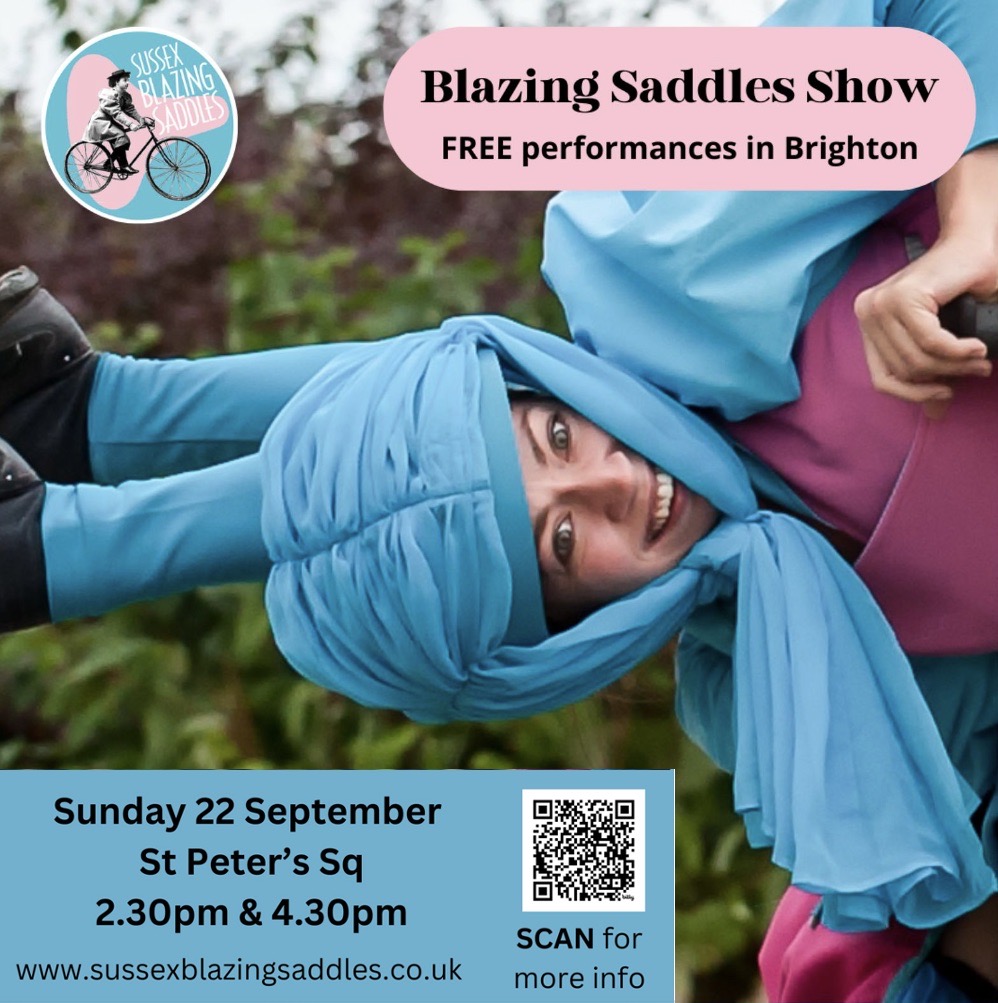9 Sep – Blazing Saddles performances in Pavilion Promenade, Worthing as part of Spin Out Festival, presented by Worthing Theatres & Museum & Sussex Blazing Saddles. Shows at 11.30 & 1.30